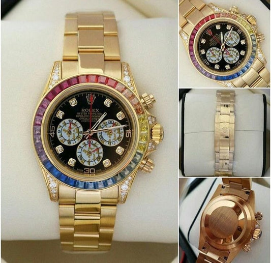 Rlx Daytona Diamond Gold Black Watch For Mens