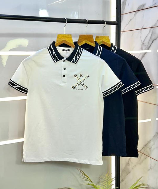 Balmlai_n Paris Logo Imported Black Collar Neck Premium T-shirt F2831 - Black