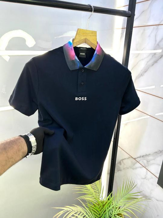 Hug_Boss Black Premium Collar Neck Polo T-shirt F2640-BLACK