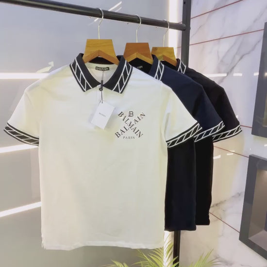 Balmlai_n Paris Logo Imported White Collar Neck Premium T-shirt F2831 - WH